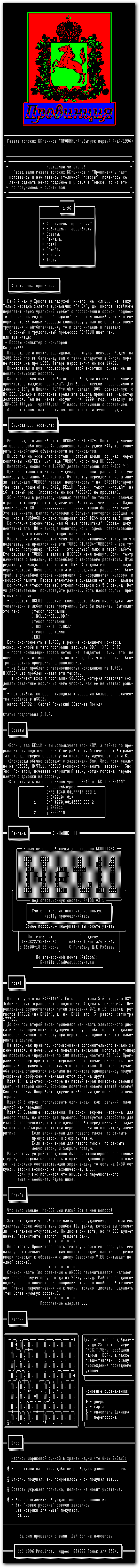 Категория: Газеты для «БК0010(-01)» на «Ассемблере» | Добавил: -=RUS=-