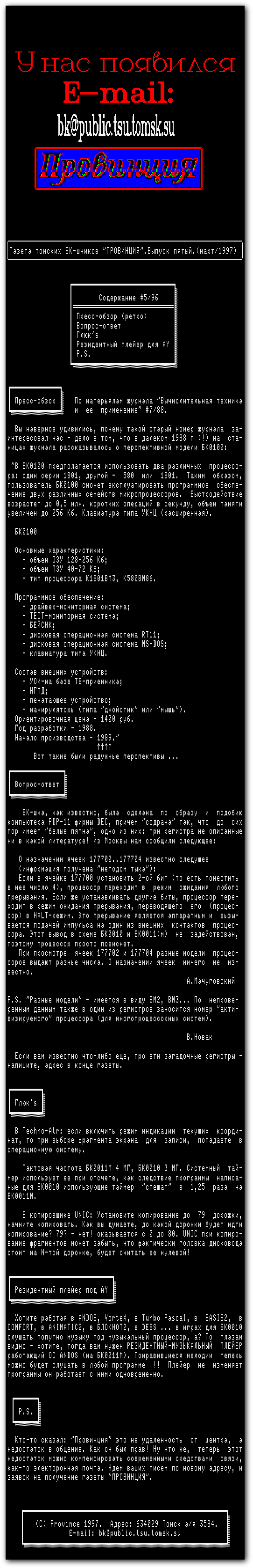 Категория: Газеты для «БК0010(-01)» на «Ассемблере» | Добавил: -=RUS=-